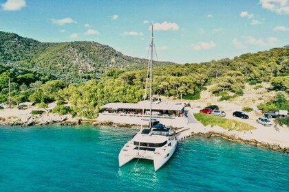 Die meisten Katamaran-Charter auf Mykonos bieten Platz für bis zu 10-15 Personen an Bord. Dank seiner Stabilität und seines Auftriebs ist dieser Katamaran ideal für die Organisation von Veranstaltungen wie Partys. Es ist auch möglich, einen Katamaran mit oder ohne Skipper zu mieten. Wenn Sie sich für einen Bareboat-Charter entscheiden, müssen Sie im Besitz eines gültigen Bootsführerscheins sein.